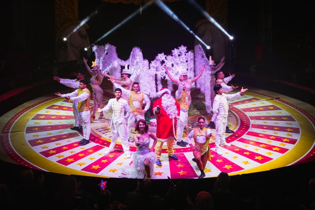 En el escenario, toda la familia puede disfrutar de un viaje al imaginario navideño, donde los elfos acrobáticos y las hadas de las estrellas se unen a Papá Noel para traer alegría y sorpresas a raudales. Todo ello en una gran carpa decorada especialmente para la ocasión, convirtiendo cada función en un momento único e irrepetible.